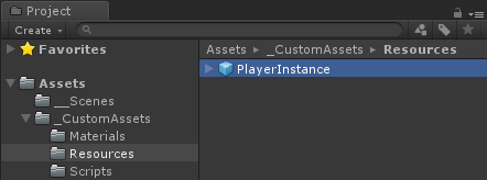 - Save the PlayerInstance to Prefab and move it to the folder called Resources (If there is no such folder, create one). This step is necessary to be able to spawn multiplayer Objects over the Network.