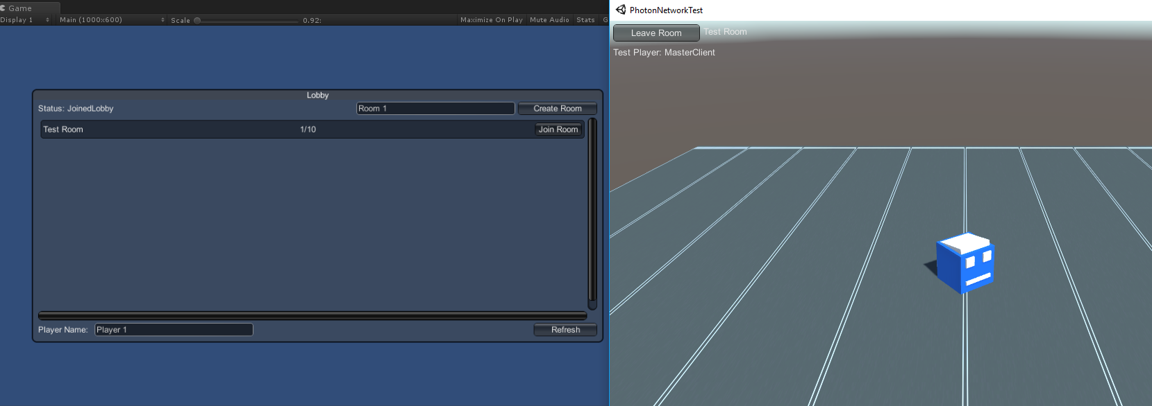 }And a simple UI with a "Leave Room" button and some additional elements such as Room name and the list of connected Players: